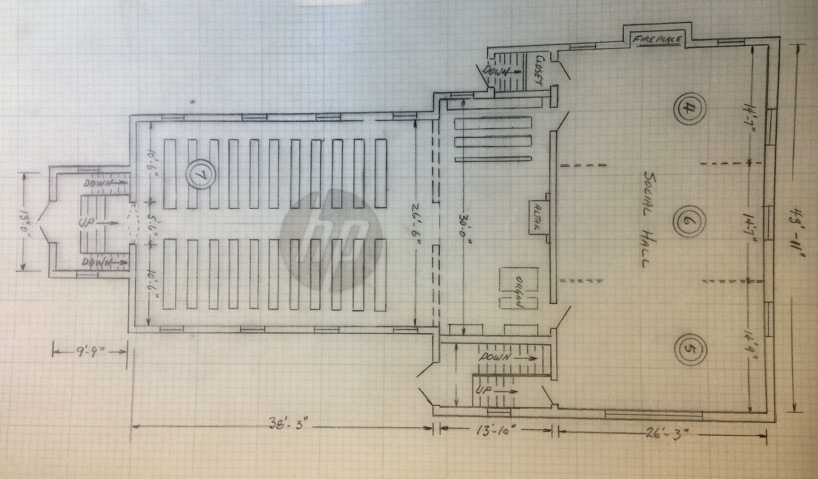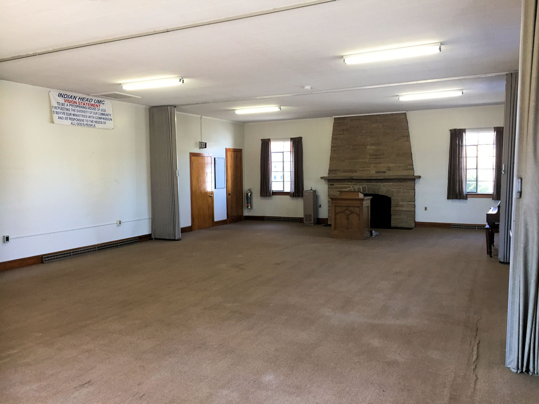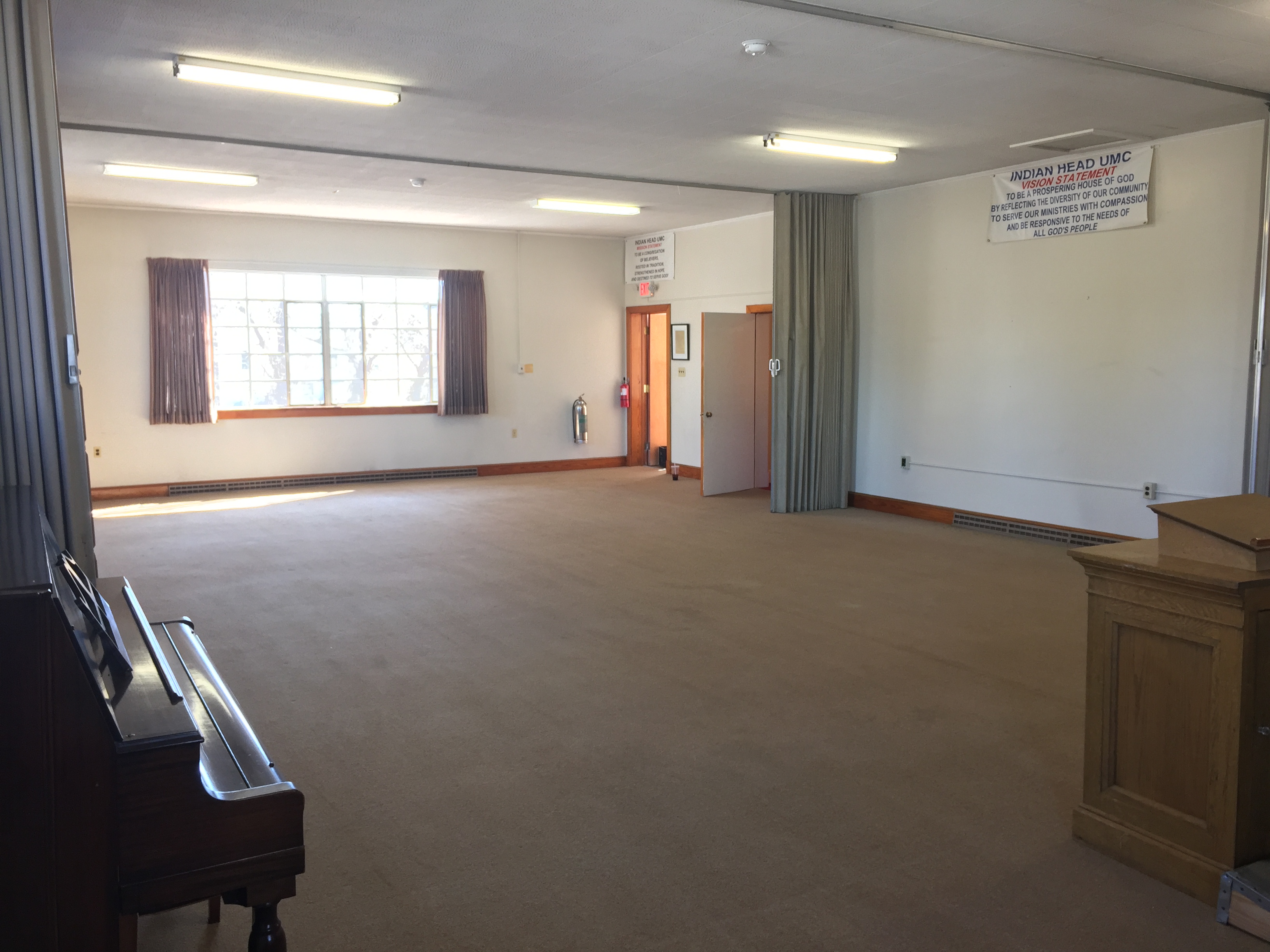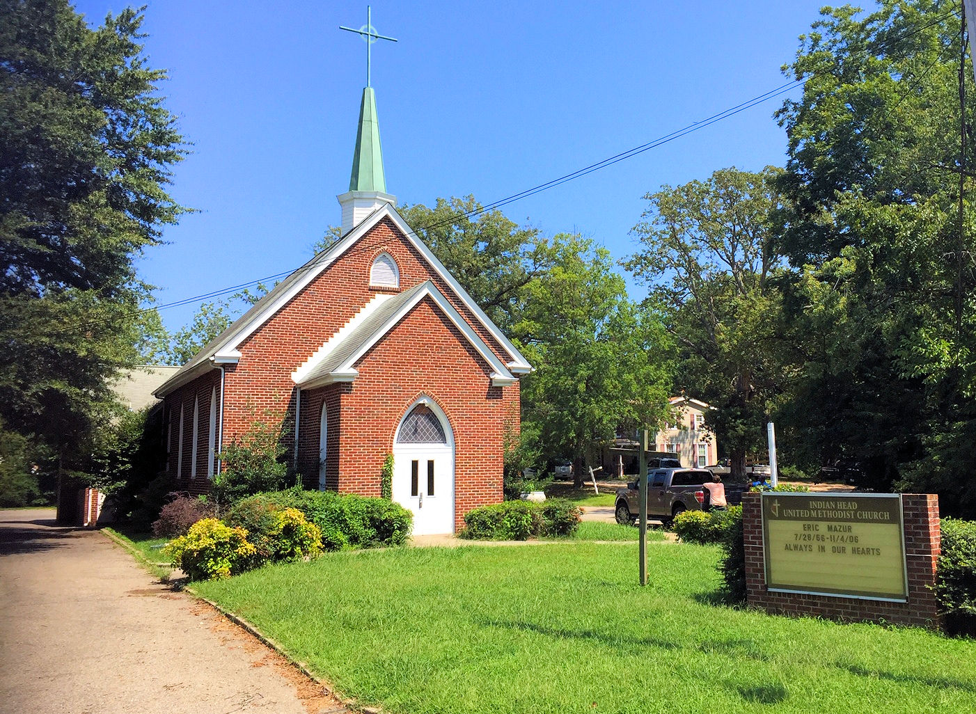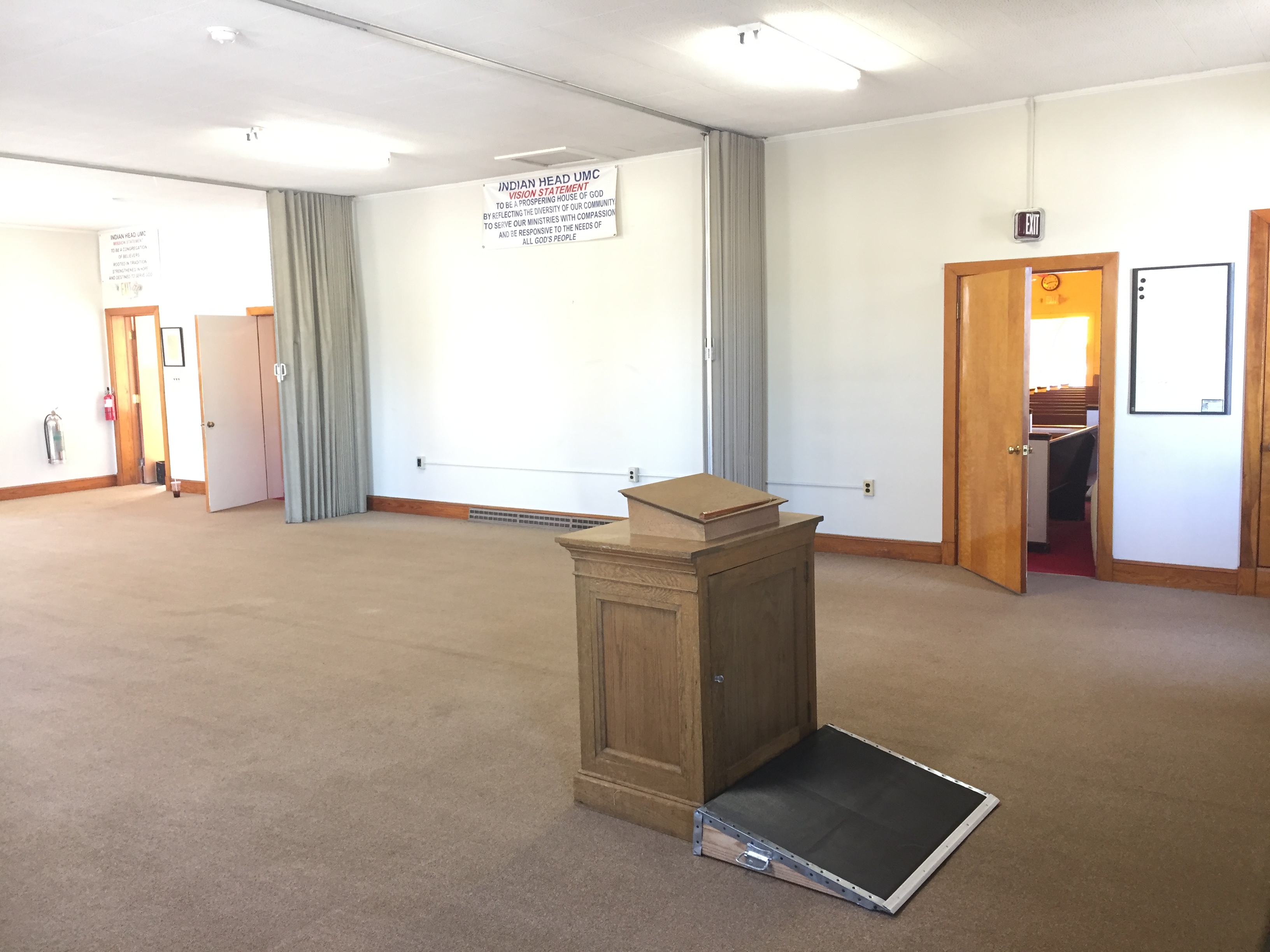 The former Indian Head United Methodist Church was built in 1958. This well-maintained two-level brick church complex offers nearly 3000 SF on each of two levels, plus a newer detached office with garage, adding roughly another 500 SF. Floor plans can be downloaded from this page.