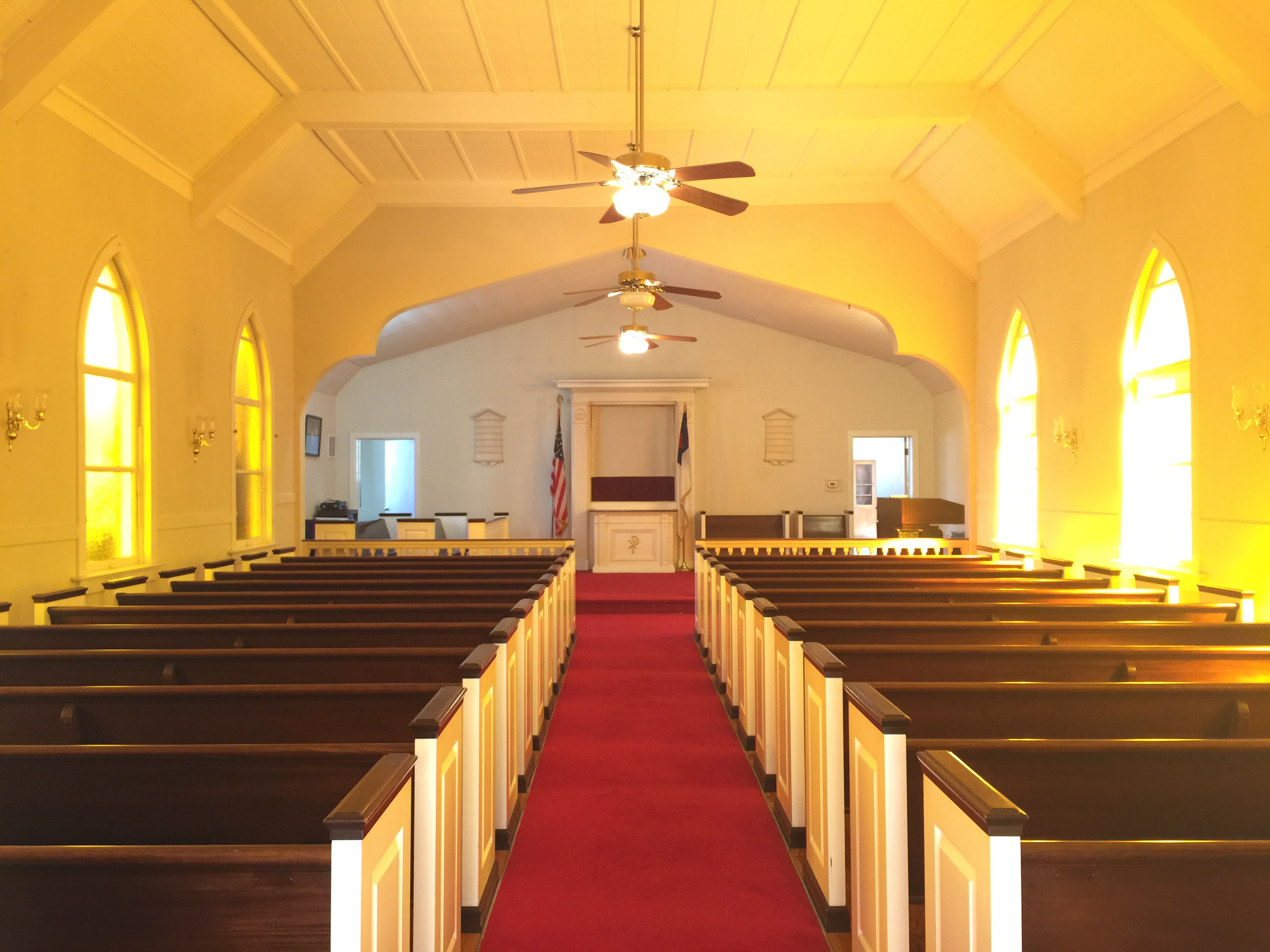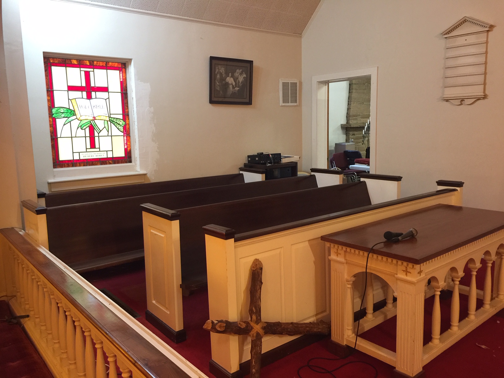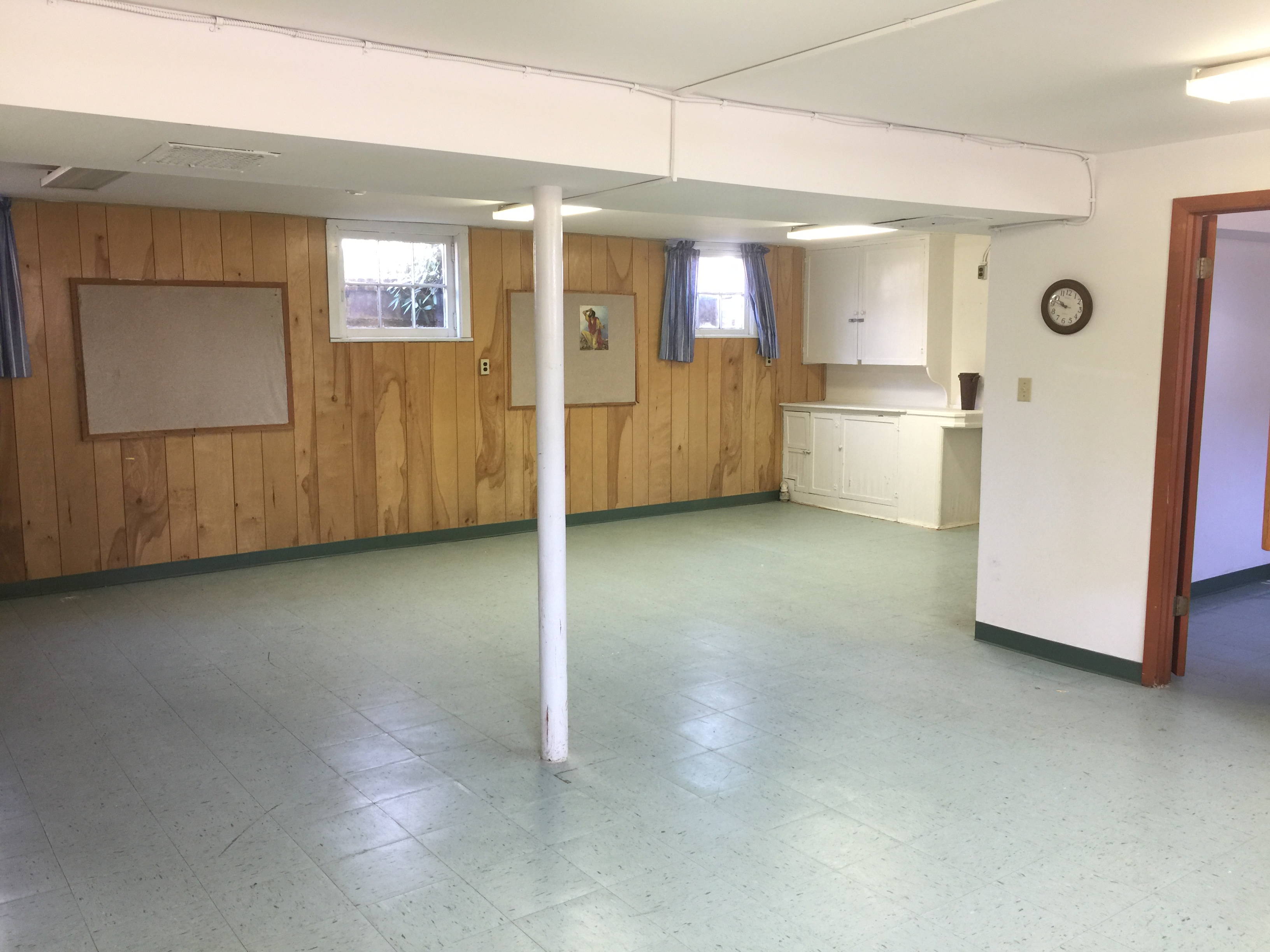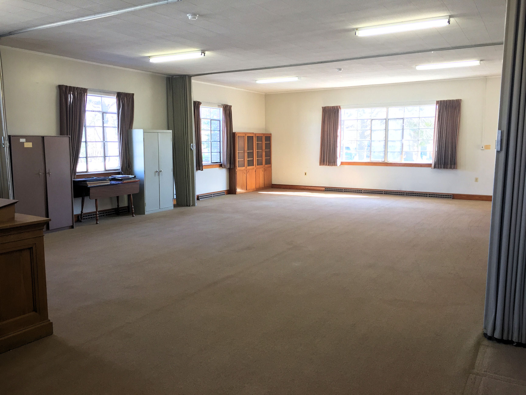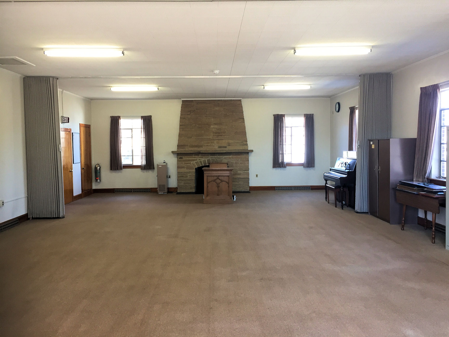 The main level includes a sanctuary and a large, sunny multi-purpose room with fireplace and room dividers. The lower level includes a commercial-style kitchen, hall, meeting/classrooms, and storage. Previously, the property functioned as a parochial school, making use of space on both levels and employing room dividers. The additional detached building offers bright, comfortable office space with window a/c and electric baseboard heat, a storage closet, and a restroom, along with an attached single-car garage. The space would also be ideal for youth ministry. There is ample paved parking behind the church, and a separate access door to the hall for easier loading and deliveries. The main complex has central heat/air, and liquid propane serves the water heater and commercial stove, which has a fire suppression system.