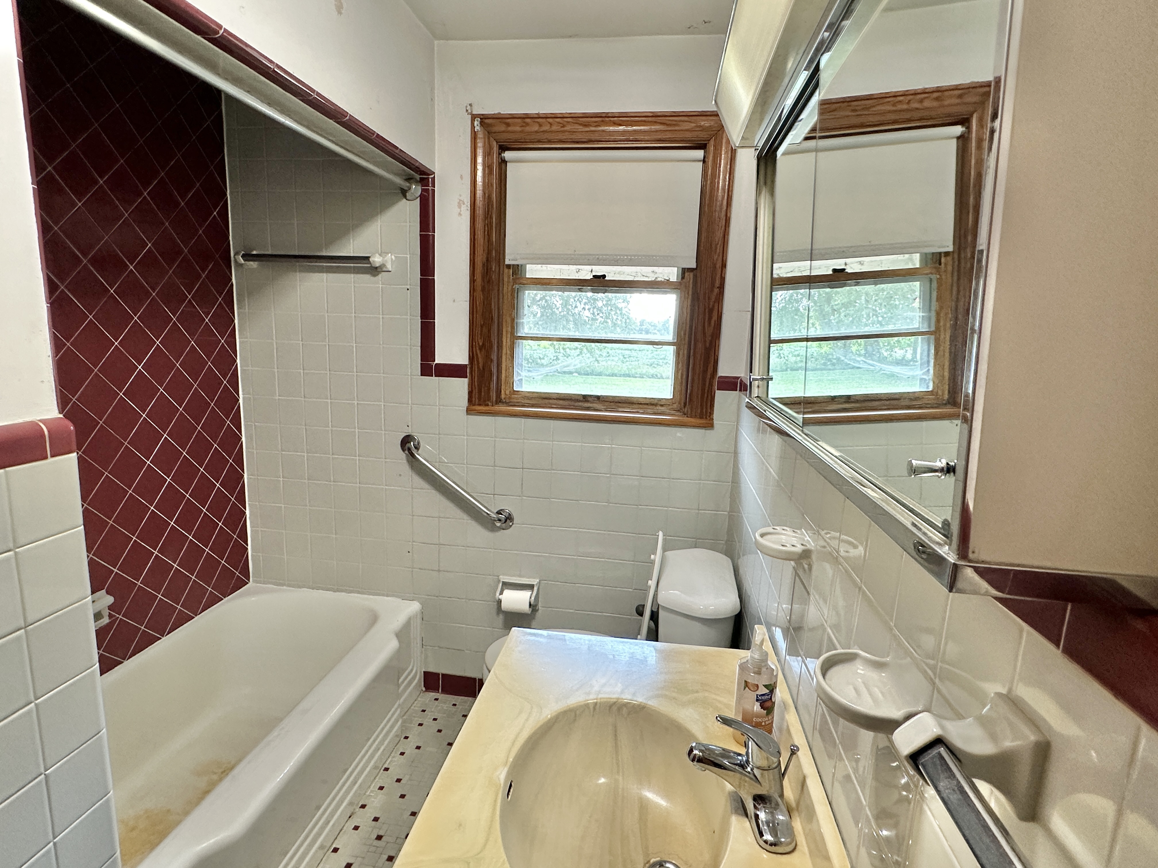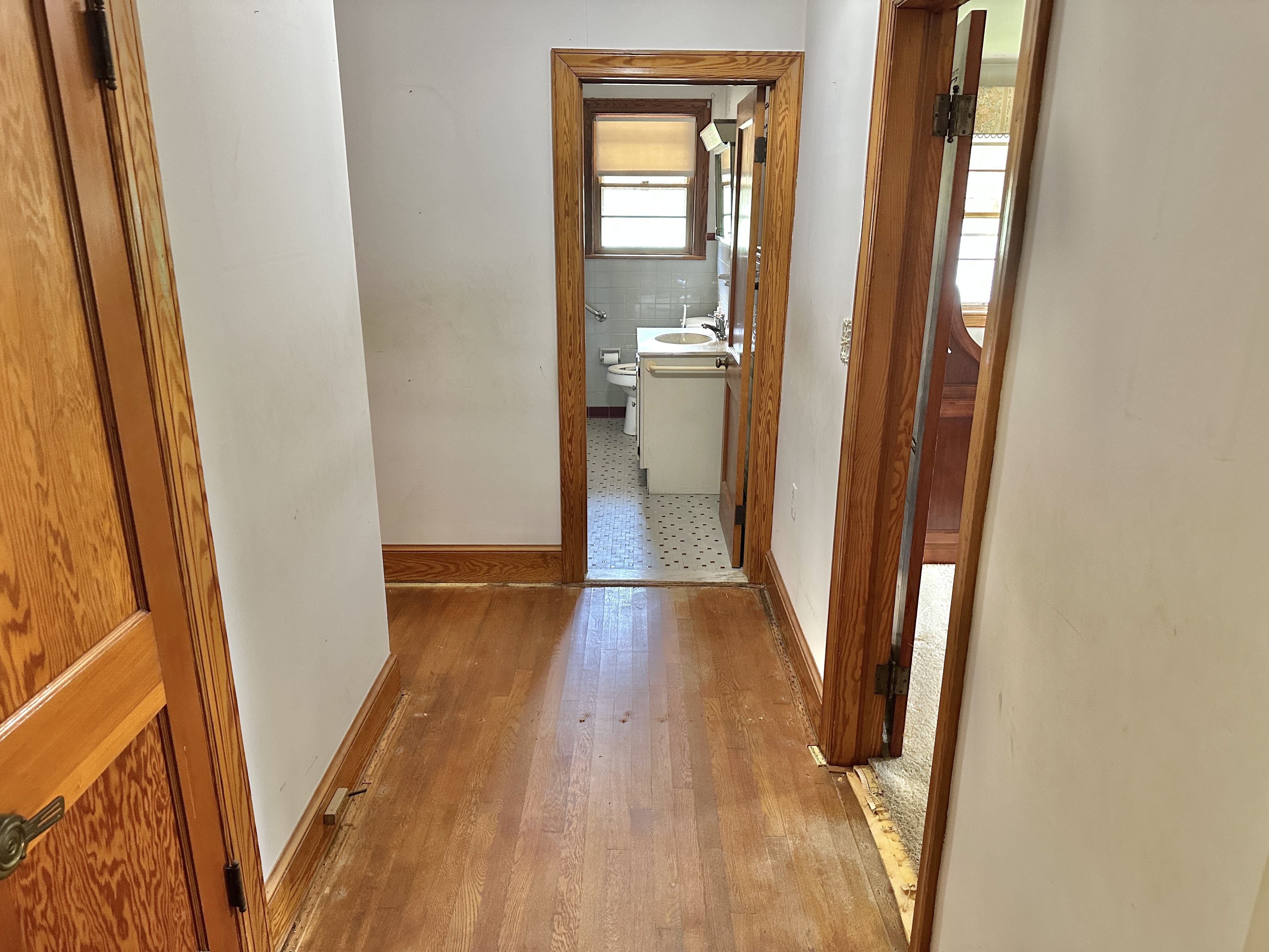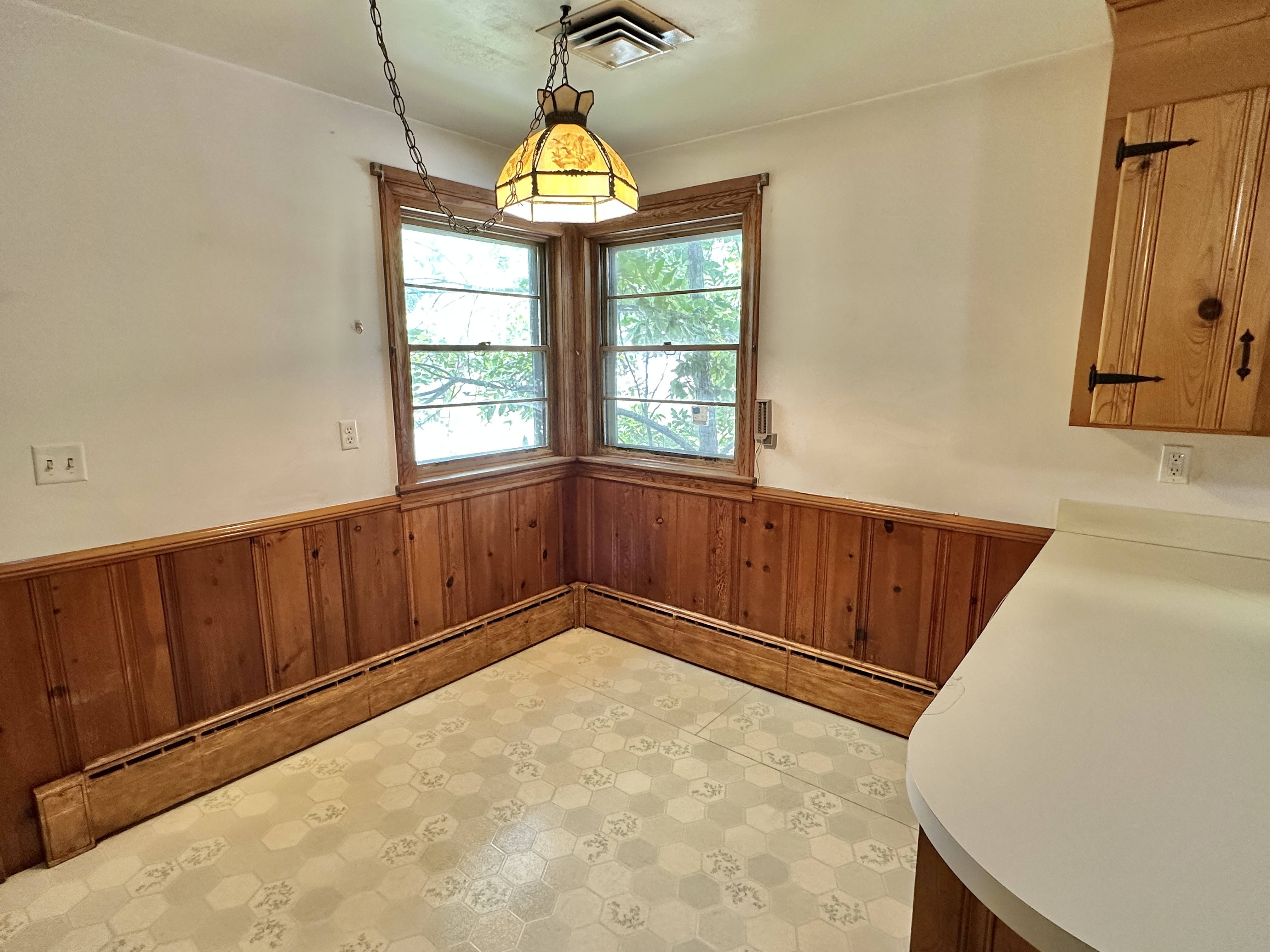 Built in 1955, this 1615 SF house sits on a 17,400 SF corner lot, and includes a two-stall detached garage. The main floor offers two bedrooms (with lighted closets), one full bath (with another lighted closet), living room, dining room, eat-in kitchen, laundry room, and sun porch with jalousie windows. While the home could benefit from some cosmetic updates, it has many possibilities -- from original hardwood that could be spectacularly refinished to a large attic that could be convertd for additional living space/bedrooms (please consult a design professional to verify).