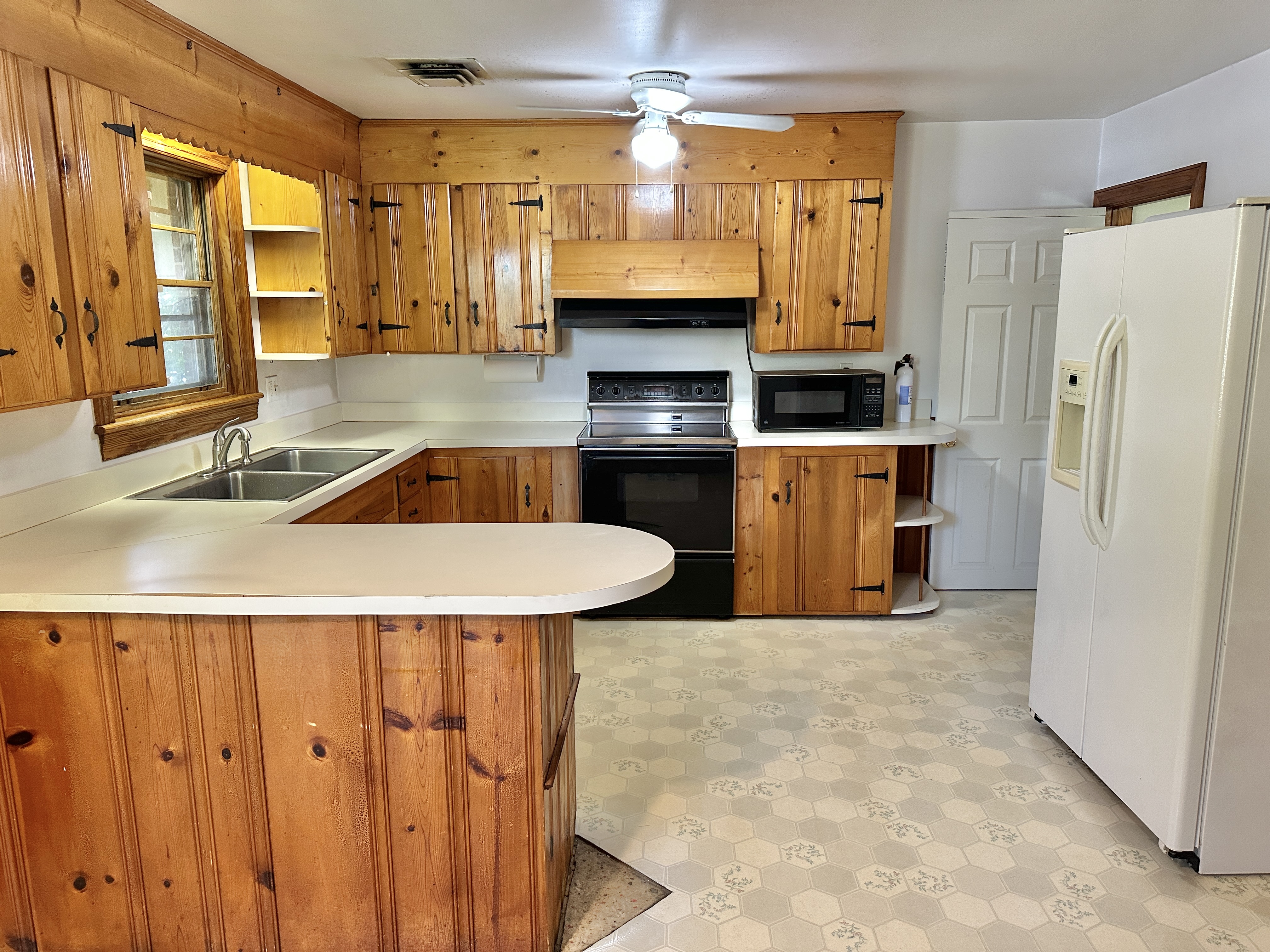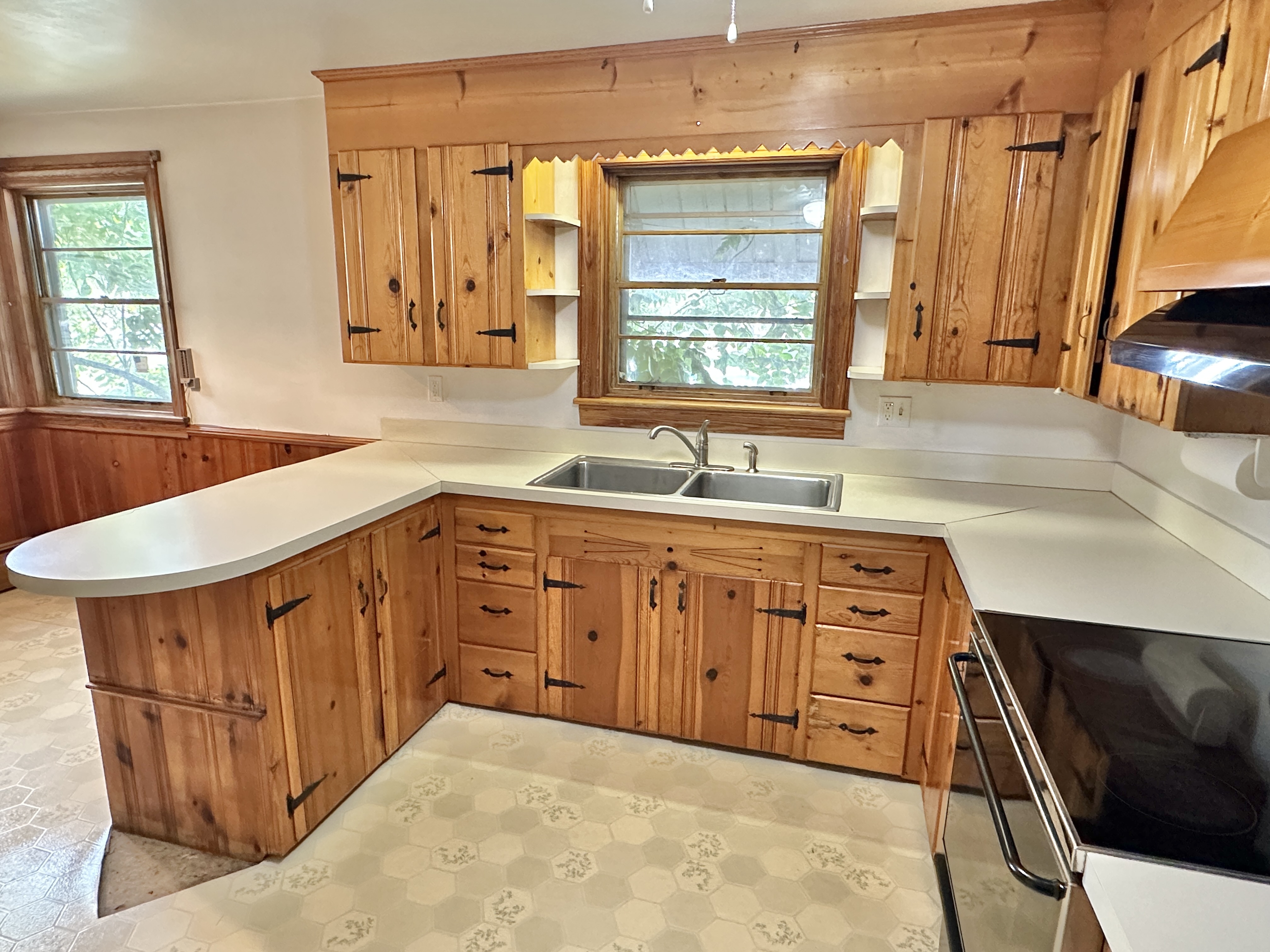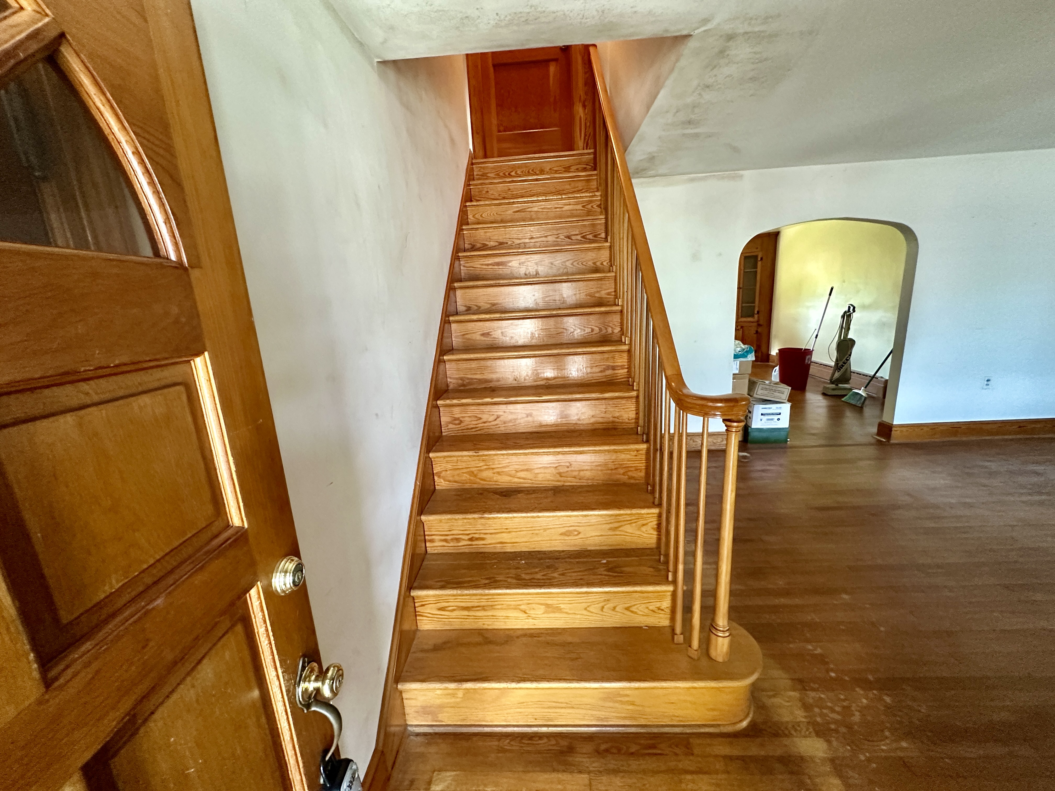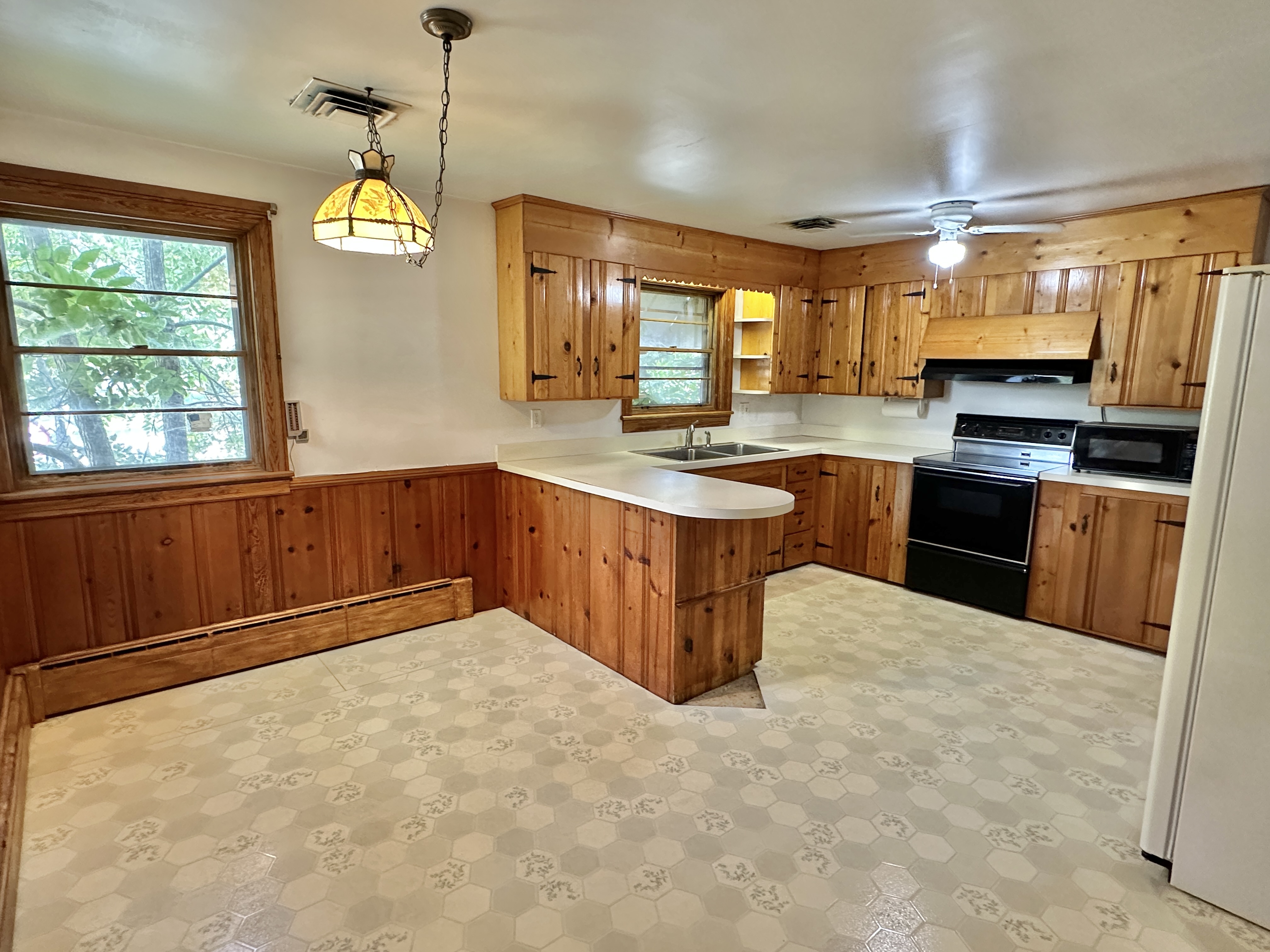 Built in 1955, this 1615 SF house sits on a 17,400 SF corner lot, and includes a two-stall detached garage. The main floor offers two bedrooms (with lighted closets), one full bath (with another lighted closet), living room, dining room, eat-in kitchen, laundry room, and sun porch with jalousie windows. While the home could benefit from some cosmetic updates, it has many possibilities -- from original hardwood that could be spectacularly refinished to a large attic that could be convertd for additional living space/bedrooms (please consult a design professional to verify).